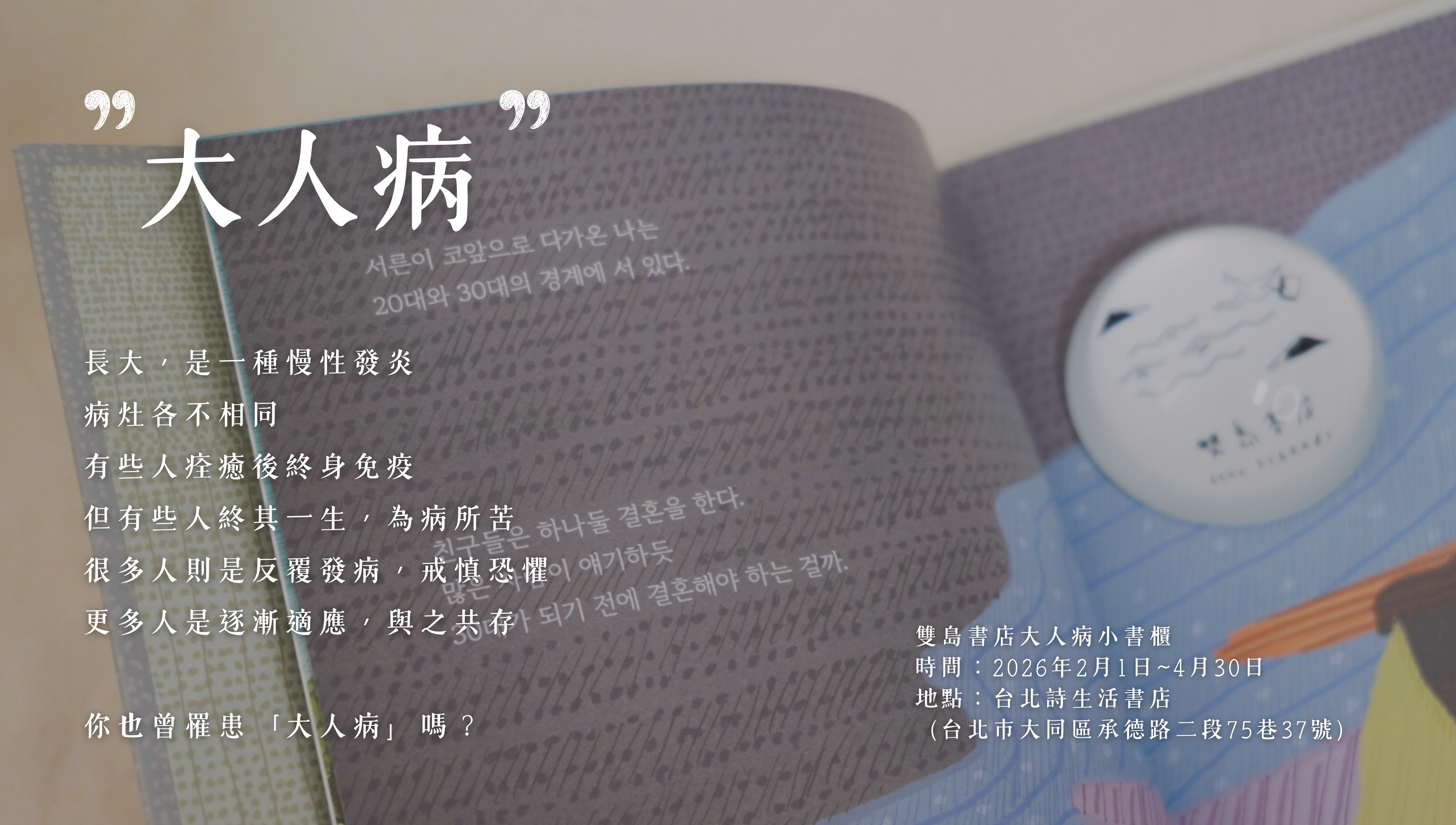 雙島書店12月選書人利茲★賜我安慰與力量的韓文書IG「吃一口韓語飯糰」的帳號經營者——利茲,現職韓語老師,兼職韓綜字幕翻譯。自從開啟韓文書閱讀之路以後,就變成了購書狂。@korean_bap 「在這既複雜又喧鬧的社會中生存,很需要時時儲備能量與學習重整,才能讓自己保持初心和有動力去做任何事。」本月書單優惠:結帳時內含利茲推薦書單任一本,輸入優惠代碼【LIZ50】,即可現折50元,優惠時間至12月31日。