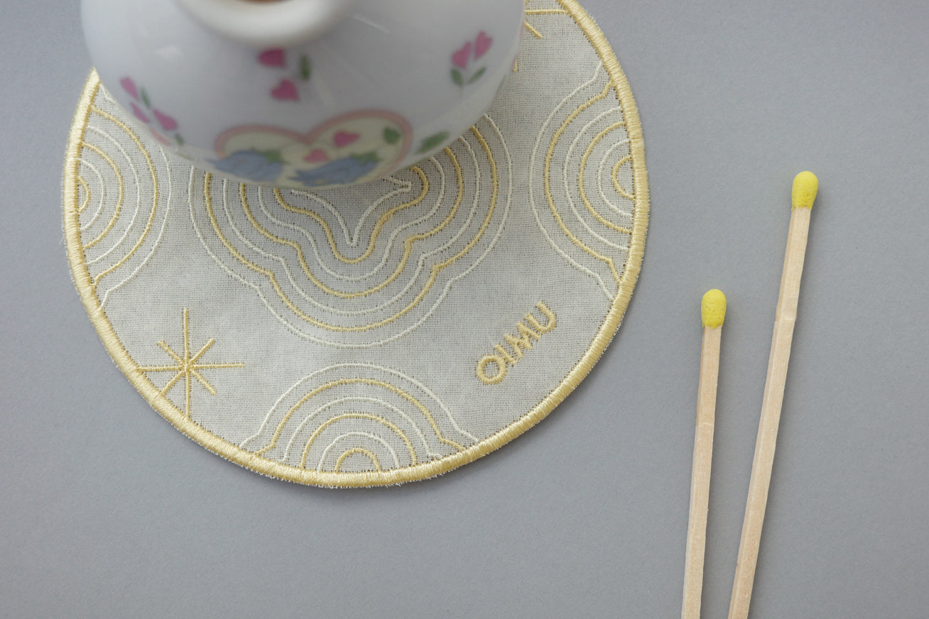 ✱ ♡ ✧ ✢ The small symbol patterns on the coasters are inspired by the traditional Korean craft of "colorful thread embossing (색실누비)", which are extended into contemporary images in the form of exquisite embroidery.
