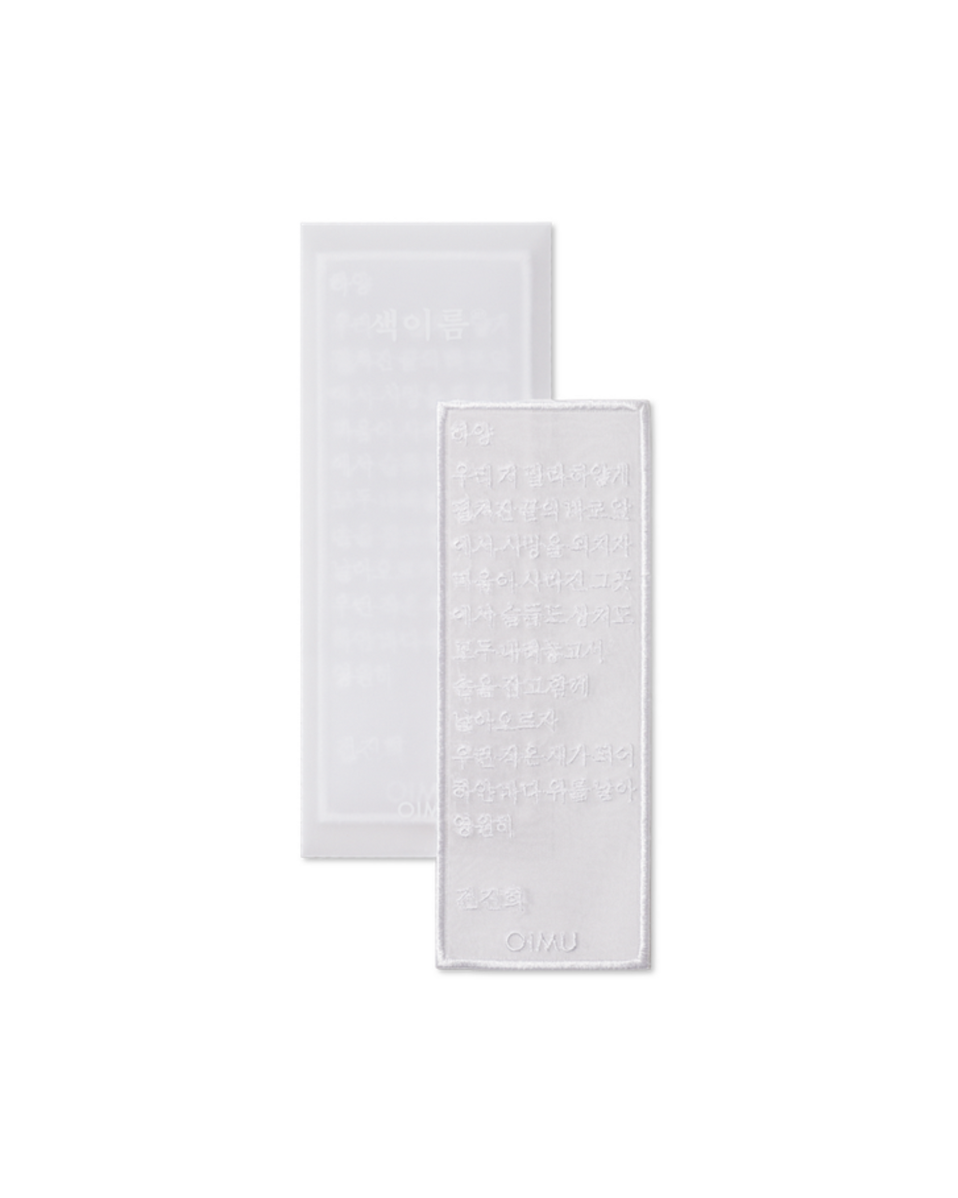 This colorful bookmark is made using the names and illustrations of these colors, embroidered on the gauze fabric commonly used for lining hanbok. The bookmark is made by overlapping two layers of gauze and finely sewing the edges.