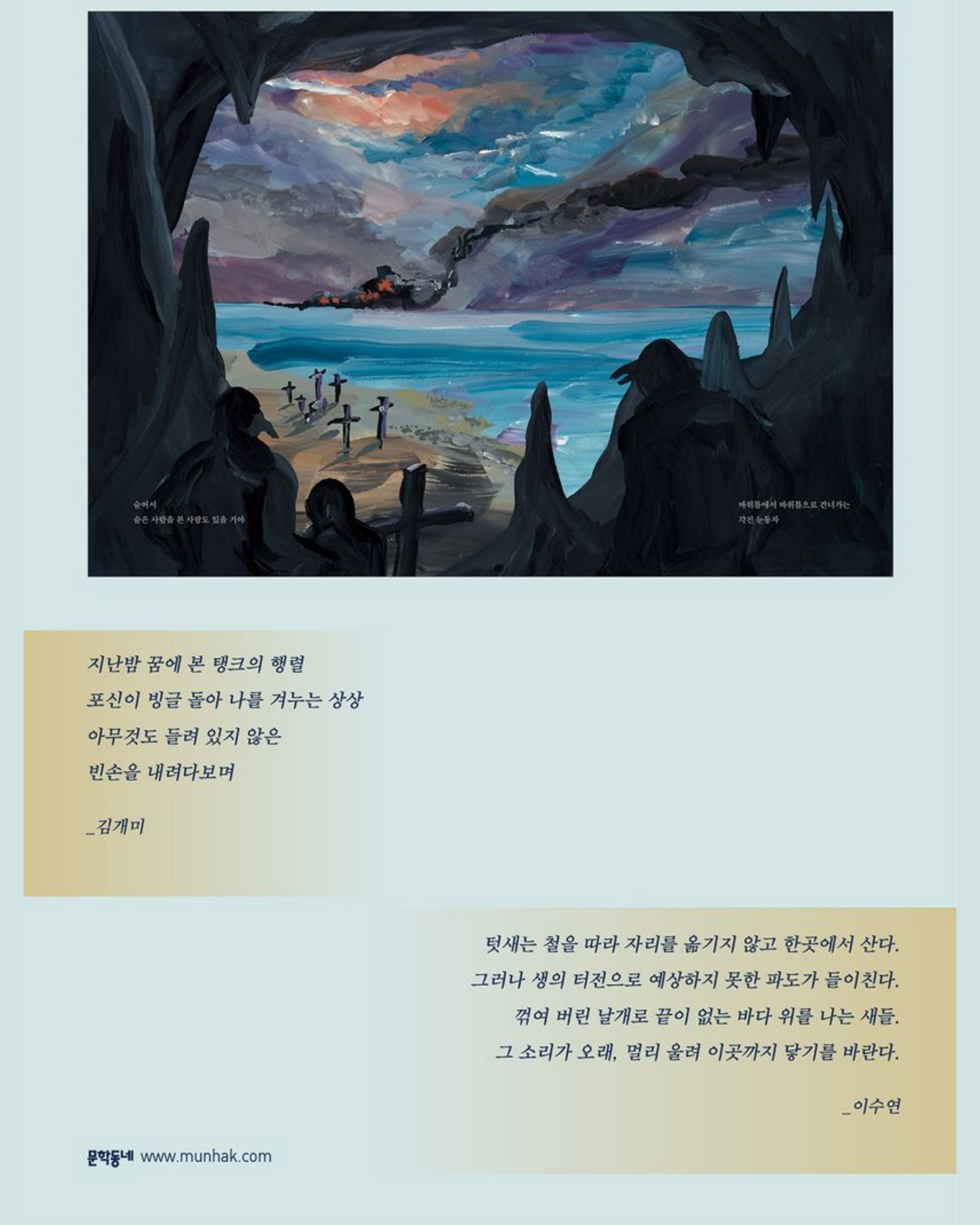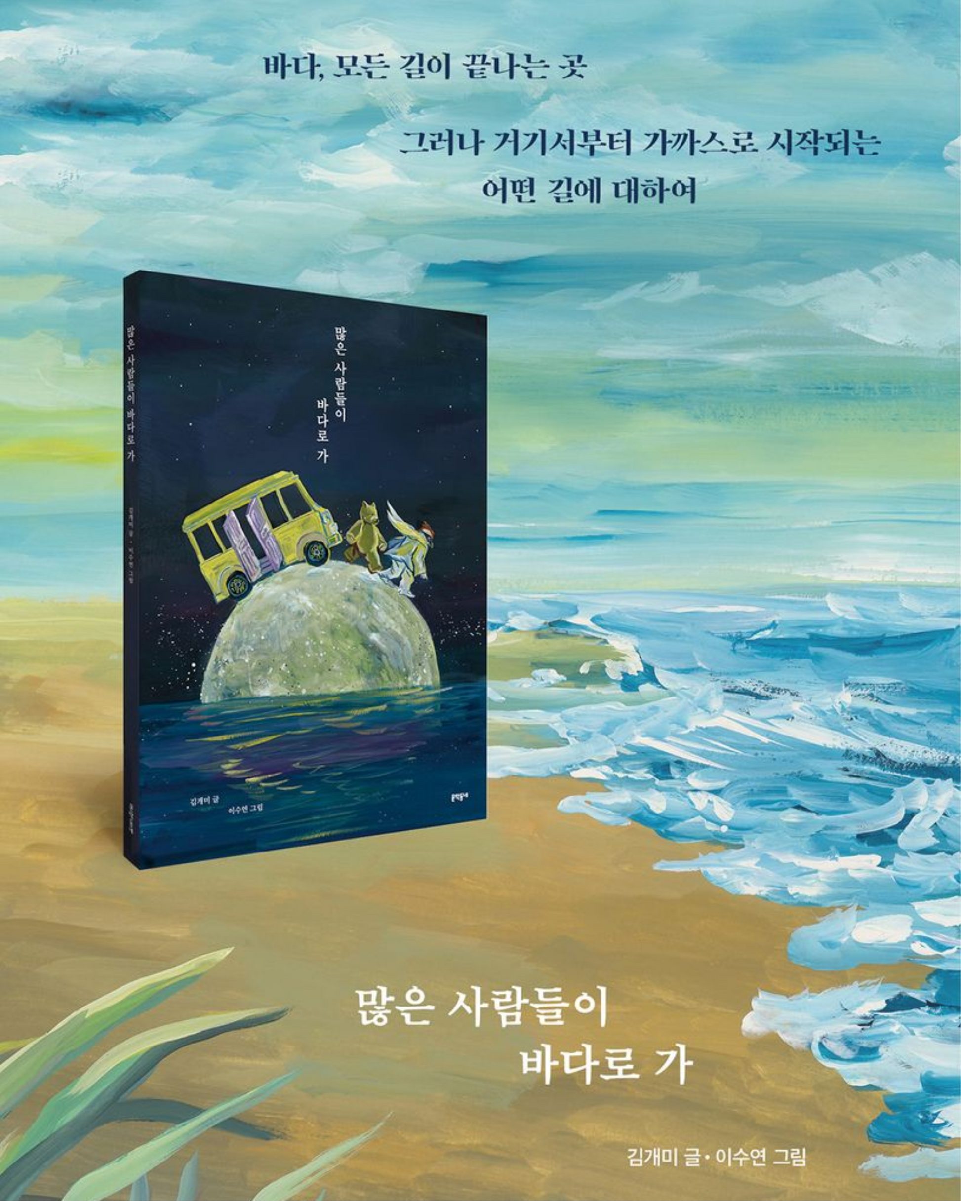繪本《他們奔向大海》,起始於詩人김개미的一首童詩。她曾榮獲第一屆文學村兒童詩文學獎、權泰應文學獎,以獨特的文體與嶄新的嘗試,為韓國兒童詩壇留下了意義深遠的足跡。