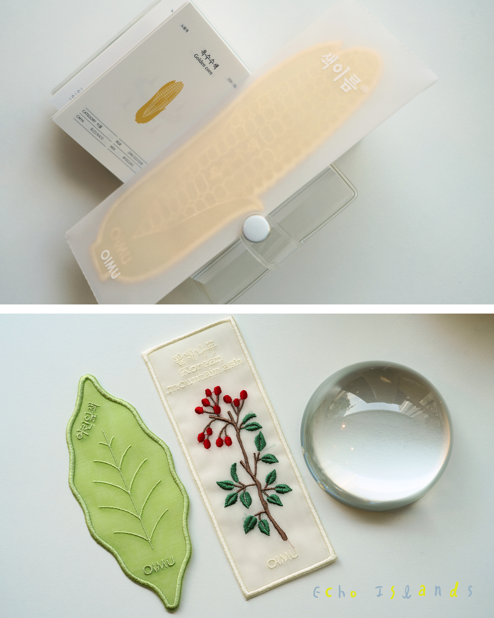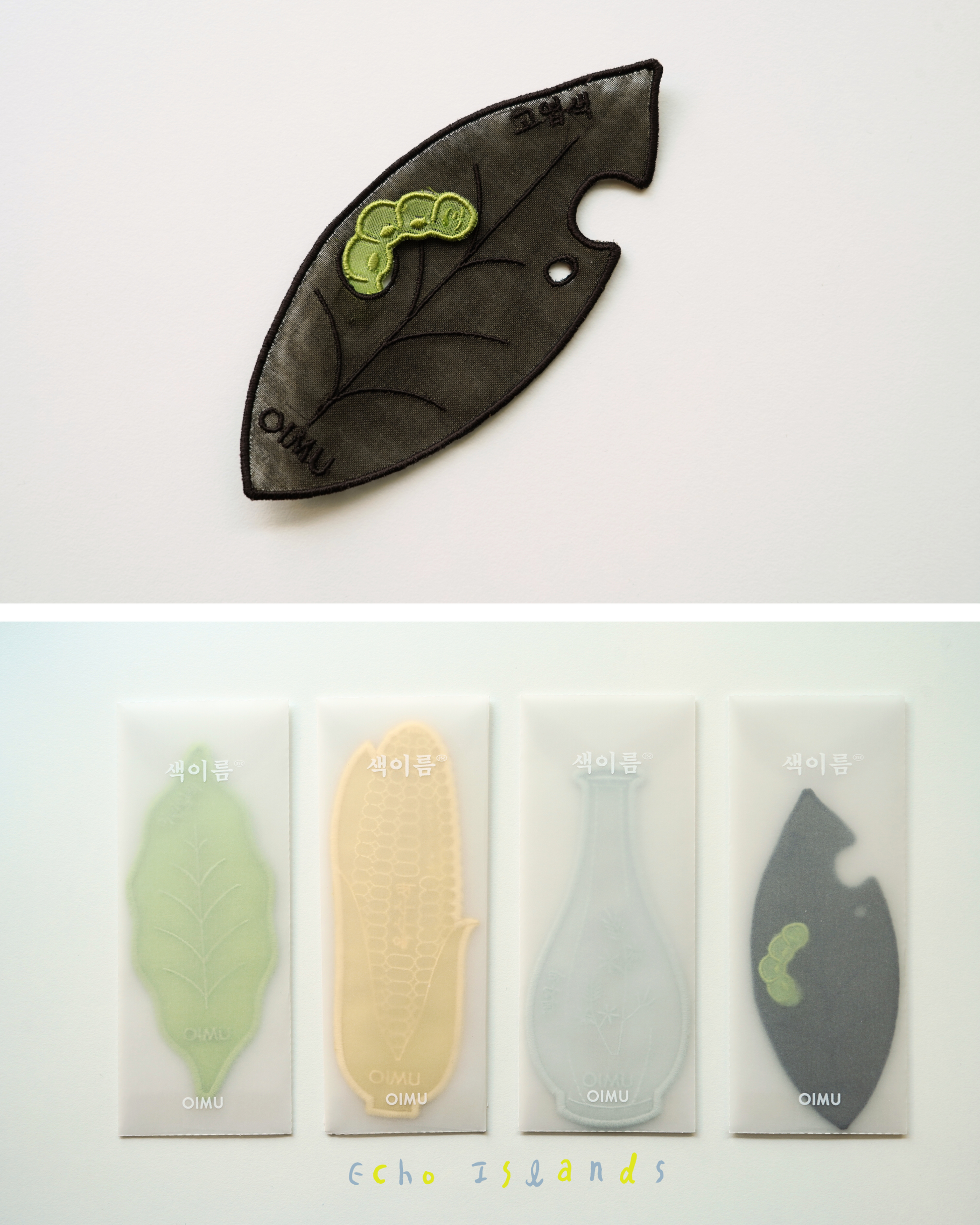 此款色彩書籤正是運用這些色彩的名字與插畫圖案製成,繡製於韓服內襯常用的紗綢布料。書籤以兩層綢紗布重疊,並精緻縫製收邊。