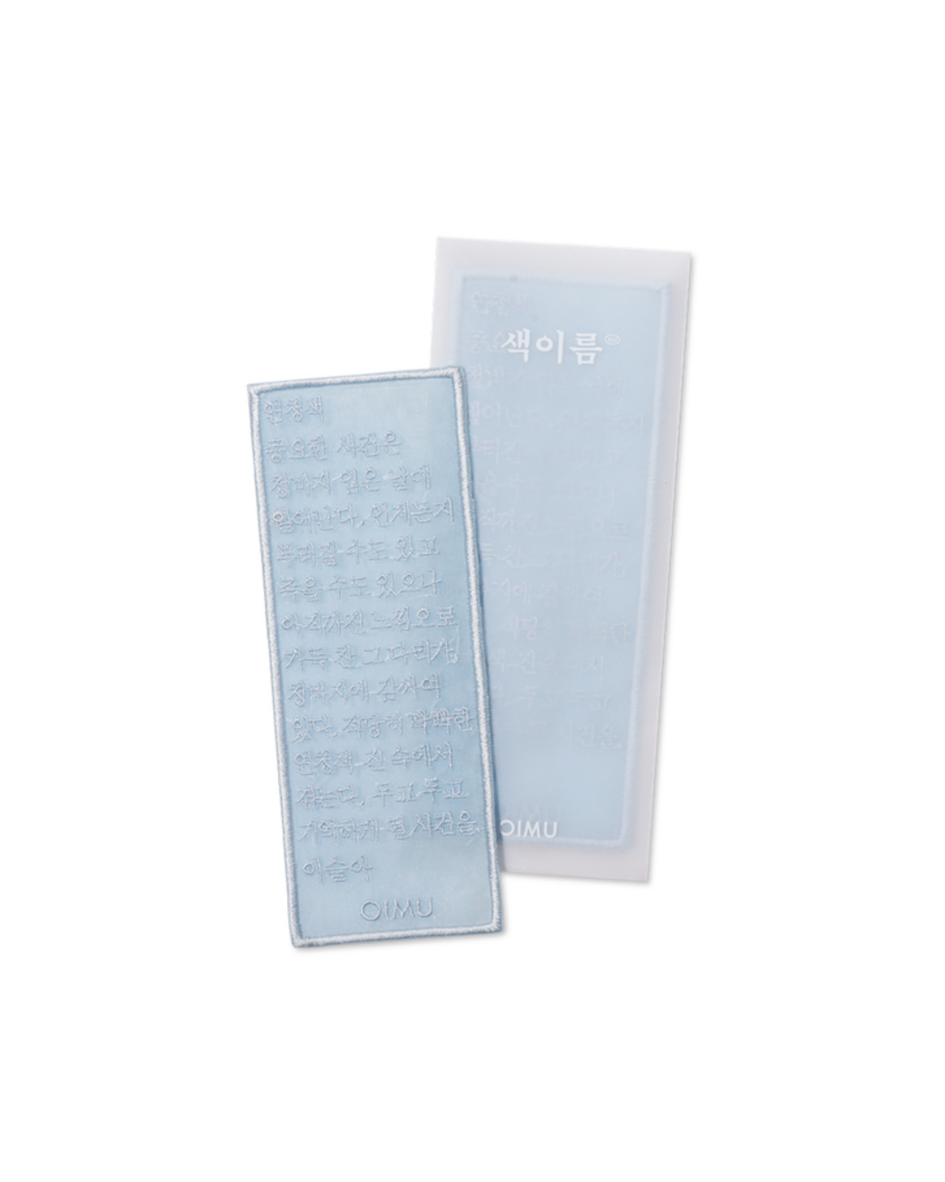 此款色彩書籤正是運用這些色彩的名字與插畫圖案製成,繡製於韓服內襯常用的紗綢布料。書籤以兩層綢紗布重疊,並精緻縫製收邊。