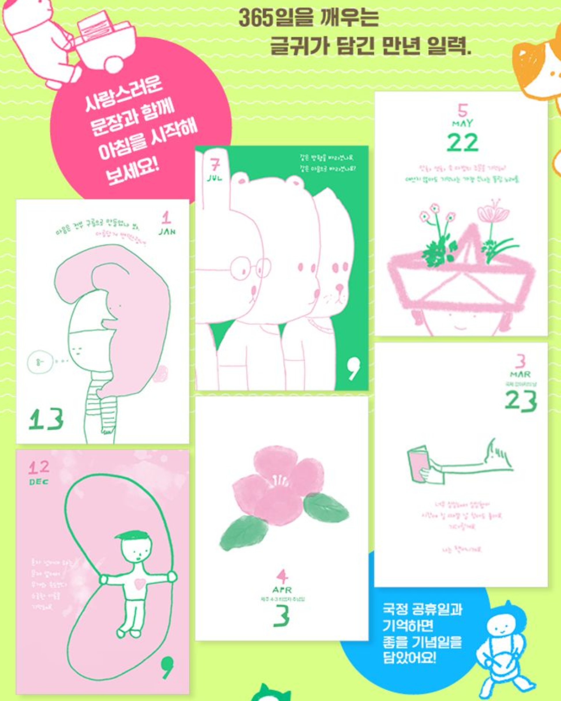 <365 안녕하자>是一款如同季節般陪伴我們情感變化的萬年日曆。把它放在早晨視線停留最久的書桌上,每天翻過一頁,一個讓日子變得特別的小小改變便會悄然展開。