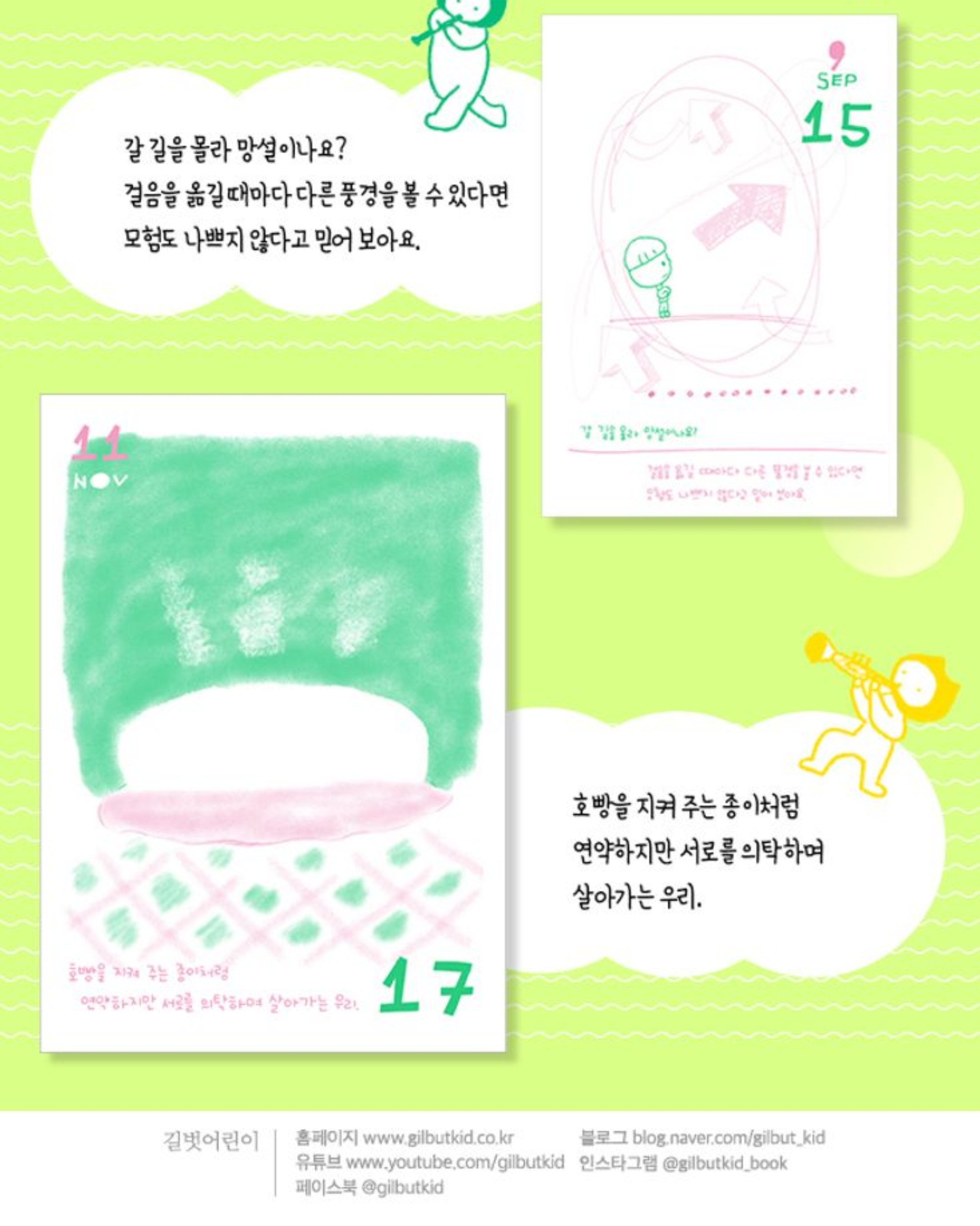 作家고정순的安慰話語裡,藏著能輕輕撫慰心靈的溫暖,也送來卸下沉重心情的思緒轉換。簡短卻堅實的文字所留下的餘韻,讓我們在每個清晨,與一句守護在身邊的話語,一起開啟特別的一天。