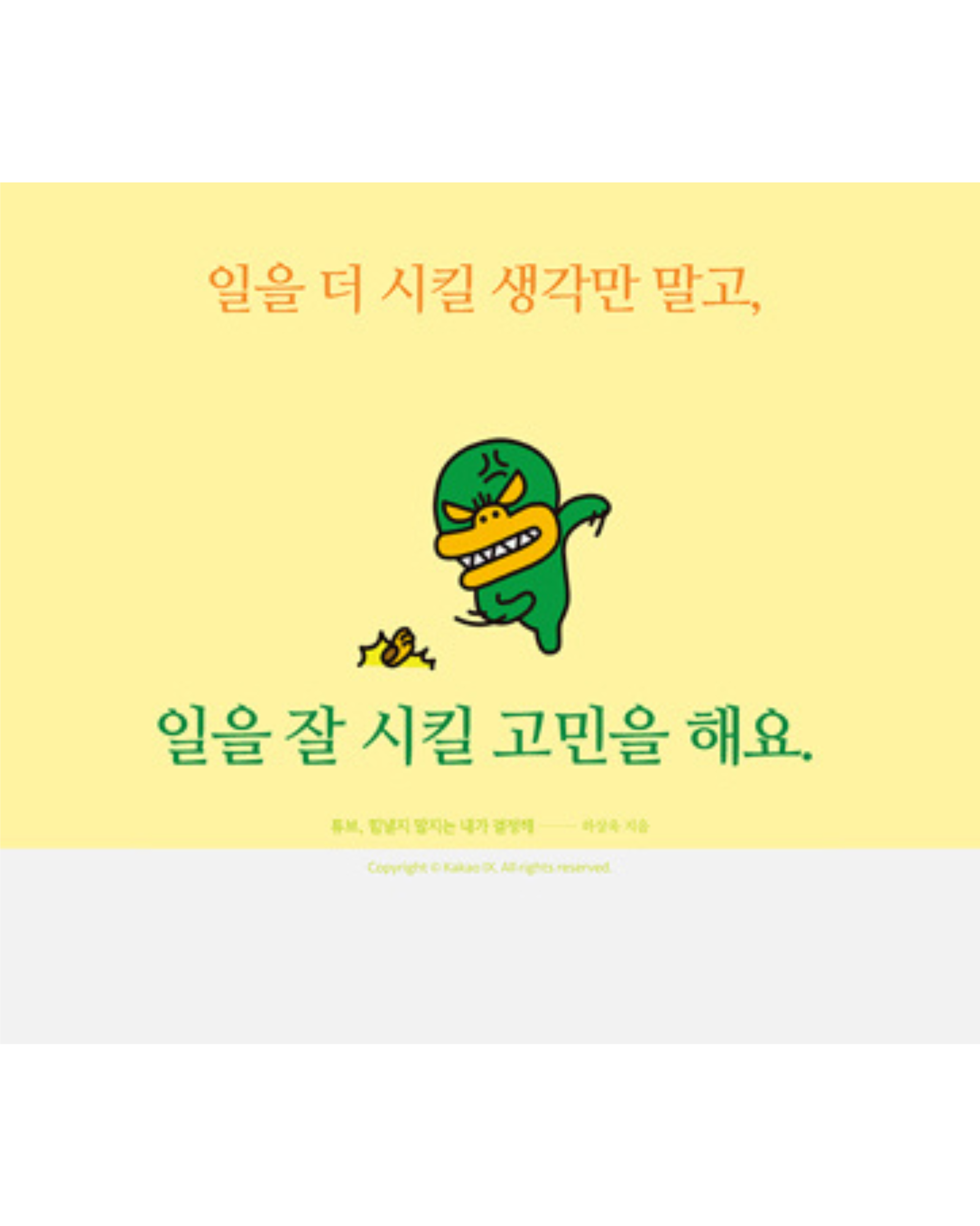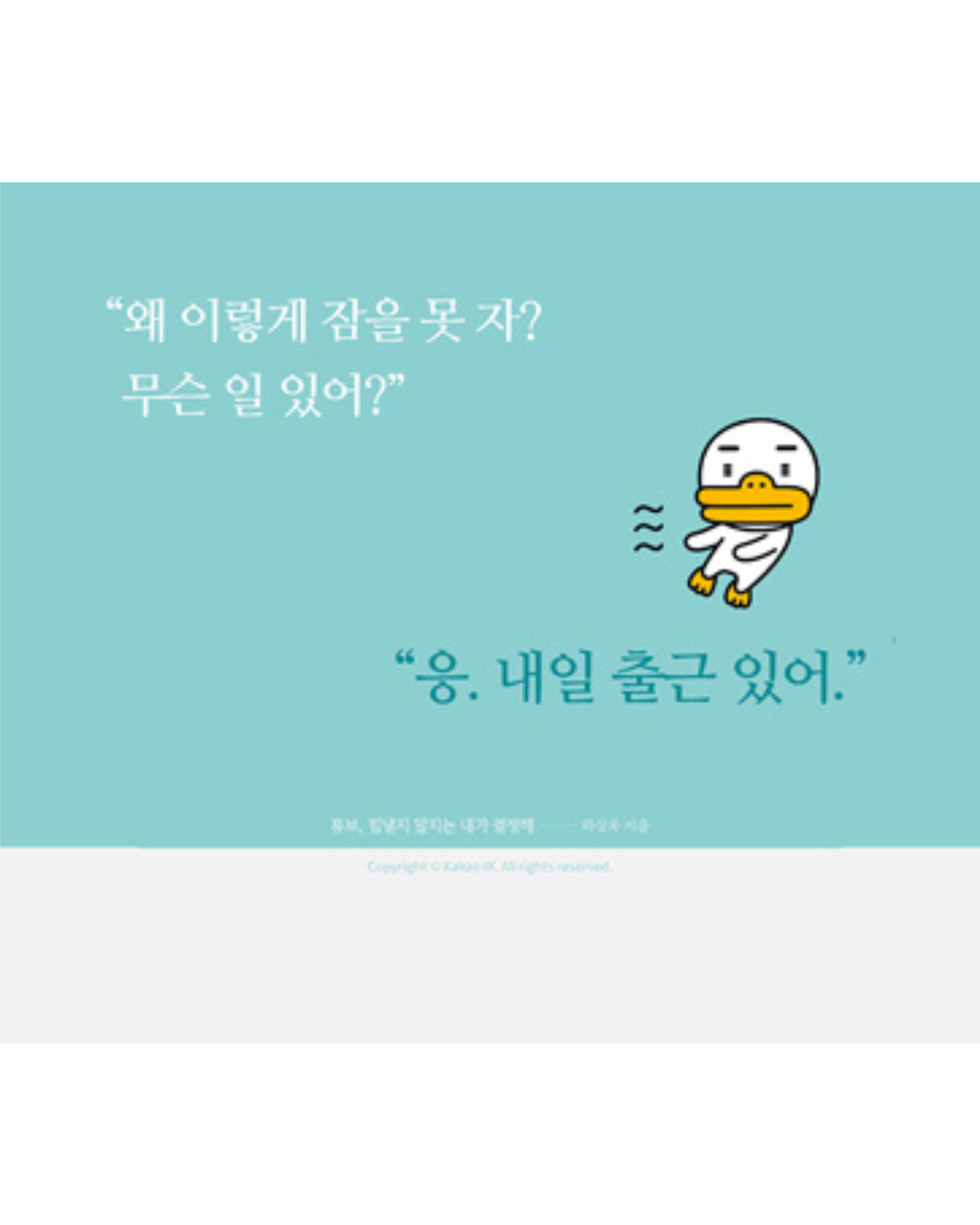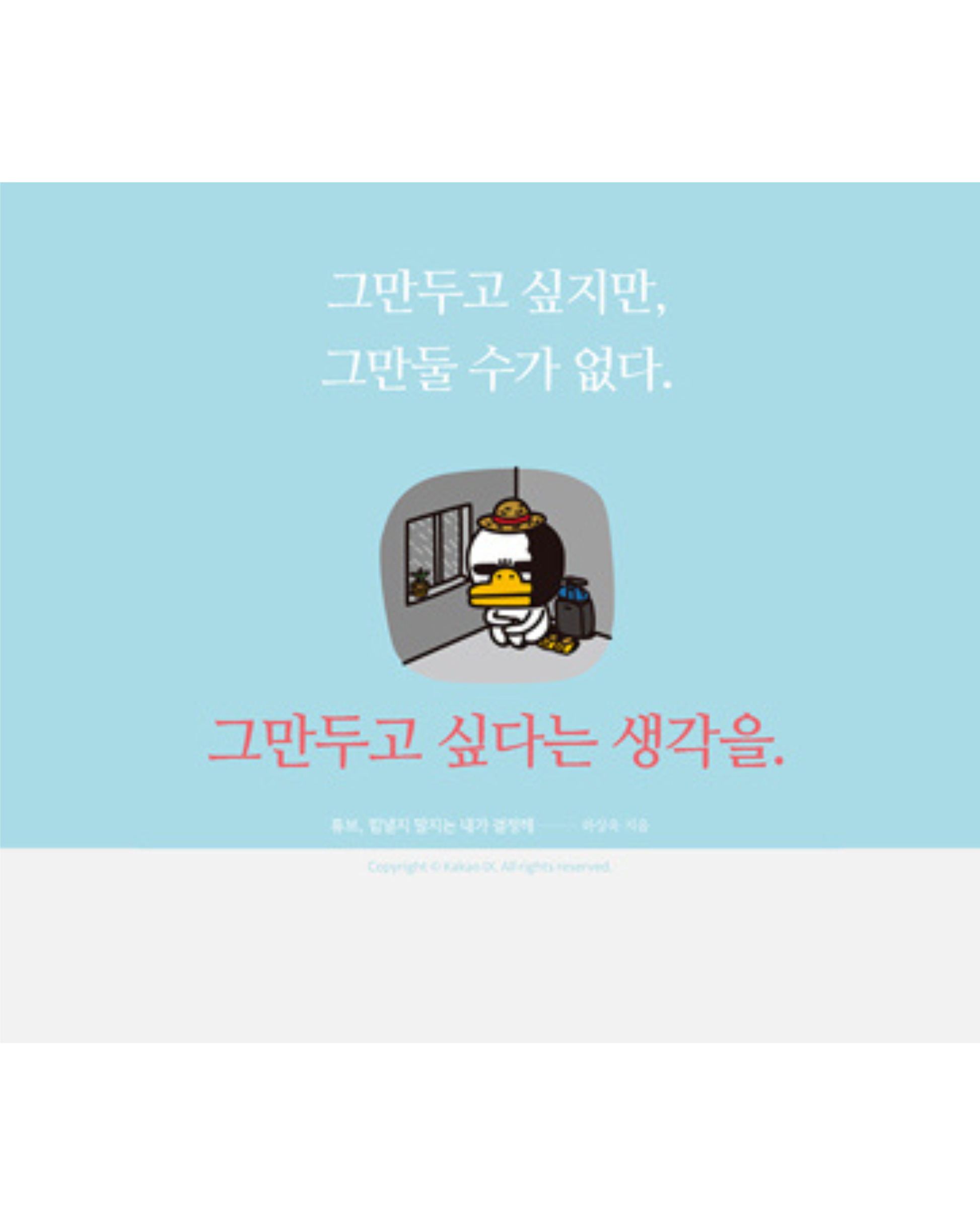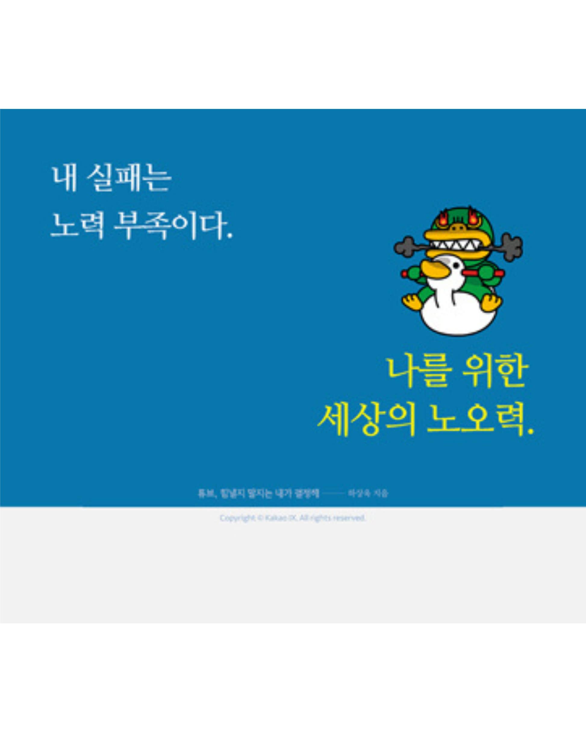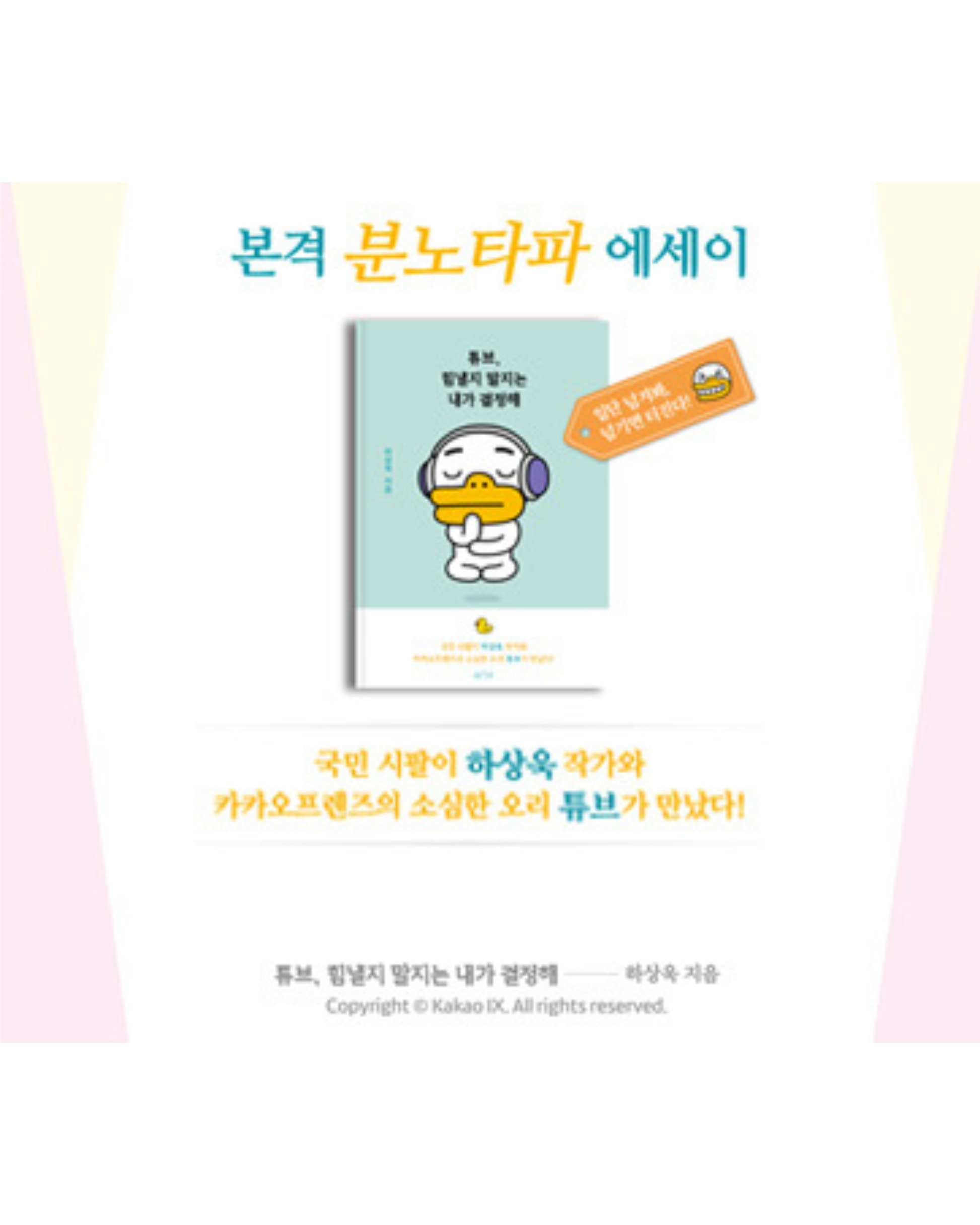 Kakao Friends角色Tube平時性格誠實安靜,但只要感到恐懼或憤怒到極點,就會噴火、掀翻飯桌,變身為「瘋狂鴨子」,當Tube遇上以《首爾詩》出道的作家하상욱,誕生了這本<튜브, 힘낼지 말지는 내가 결정해>。